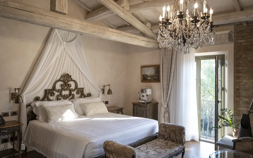 La Master Suite “Cantiere” si trova al primo piano della Cantina, dove ancora oggi viene prodotto il vino Petriolo. La camera offre una zona relax che comprende un accogliente salottino, un fantastico caminetto caldo e una vasca da bagno che si affaccia su un panorama incredibile.