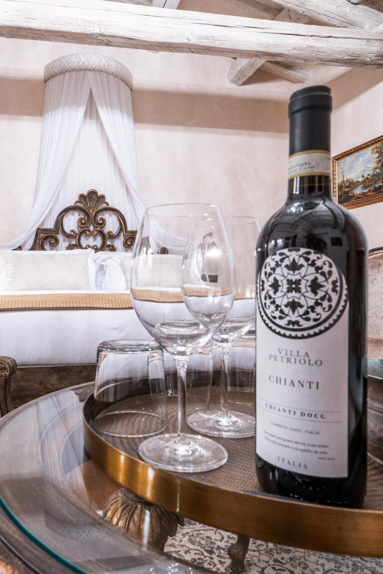 The “Cantiere” Master Suite is located on the first floor of the Cellar, where Petriolo wine is still produced today. The room offers a relaxation area that includes a cozy sitting area, a amazing warm fireplace and a bathtub overlooking an incredible view.