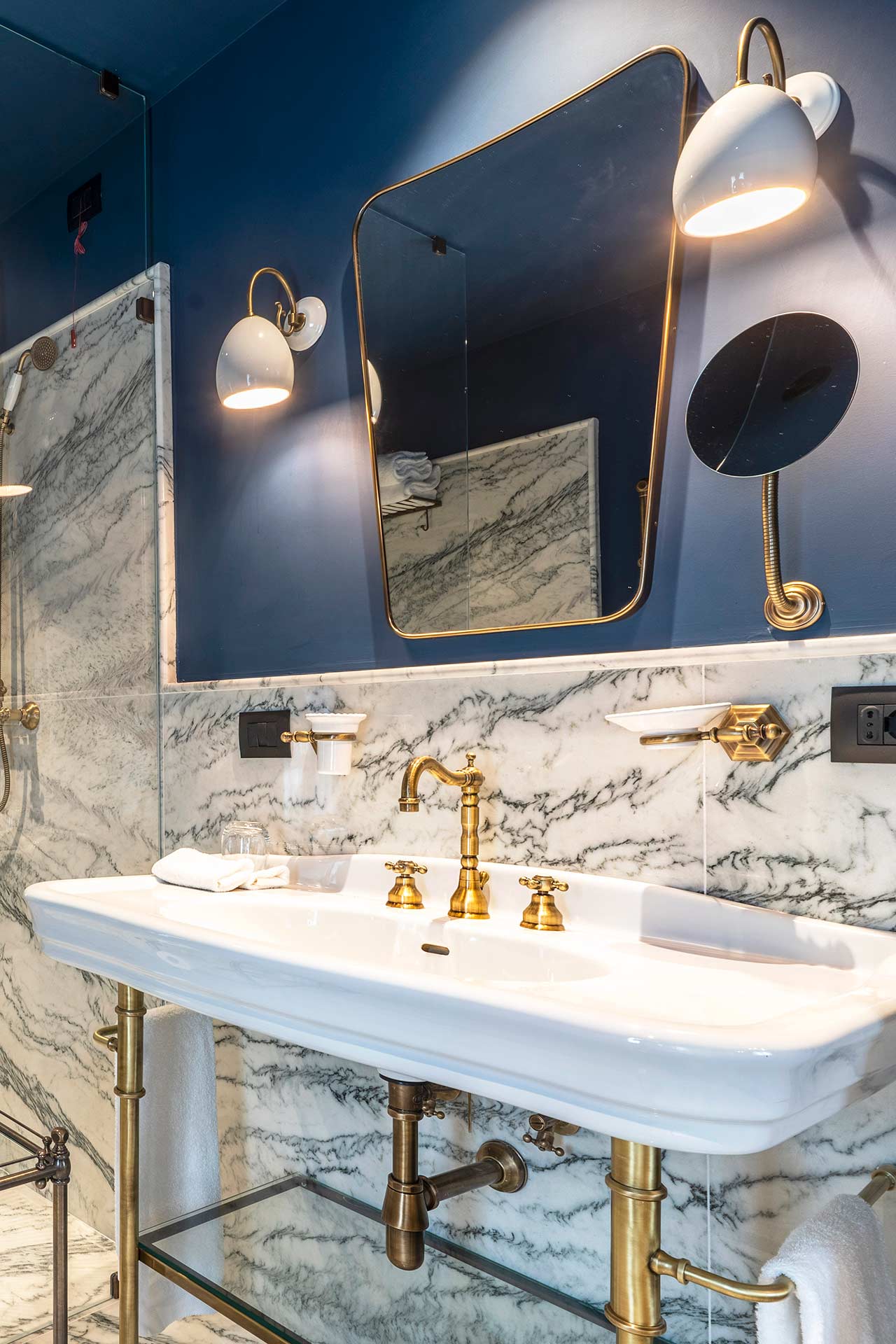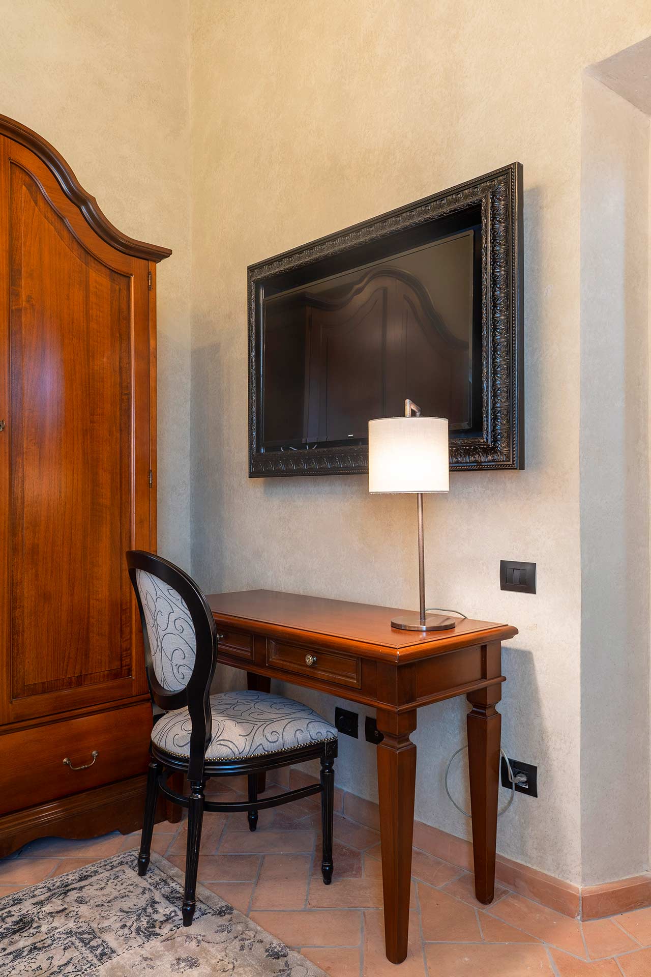 The 45sqm “Quartierino” Master Suite is located on the main floor of the sixteenth-century villa, and is a small neighborhood of the same: it has a small private entrance that leads to a large bedroom with master bathroom, a study and a second bathroom.